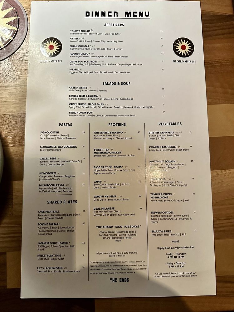 The Ends Restaurant in Scottsdale, AZ offers a trendy and upscale New American dining experience. With a range of amenities including reservation options, delivery, and valet parking, it caters to a diverse clientele. The menu boasts unique appetizers like Braised Beets & Burrata and shared plates like Brisket Burnt Ends. Pasta lovers can indulge in dishes like Cacio Pepe and Garganelli Ala Zozzona, while meat enthusiasts will appreciate offerings like the Wagyu New York Strip. The atmosphere is described as intimate and classy, with positive reviews praising the knowledgeable staff and carefully crafted cocktails. Overall, The Ends seems to offer a delightful culinary journey worth exploring.